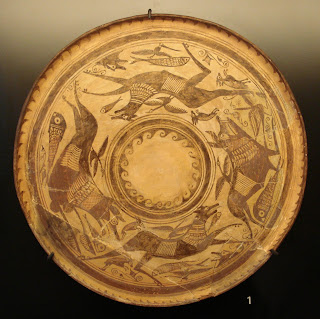 Los peces suelen ocupar un lugar secundario en las composiciones. Incluso adaptan su forma a los espacios libres. Su factura no está muy cuidada. En algunos peces el interior del cuerpo está rayado, pudiendo estas rayas adoptar formas diversas. Ciertas partes anatómicas del pez son a veces bien tratadas, como en el caso del ojo, la cola y las aletas. Son pocas las piezas cerámicas en las que los peces constituyen el único o el principal tema decorativo. Los peces no suelen ajustarse a predeterminismos estéticos, ofreciéndonos una variada gama iconográfica. Las simpáticas liebres aparecen con relativa frecuencia. Ellas sí que responden a ciertos convencionalismos estilísticos. Pueden tener el cuerpo dibujado a tinta plana, relleno de líneas en retícula o combinando ambas decoraciones a un tiempo. A veces están en reposo, mientras que en otros casos corren o saltan, como si huyesen. Son normalmente de pequeño tamaño, ocupan casi siempre lugares secundarios y adaptan su forma a los espacios vacíos. La excepción la constituye una pieza de Elche en la que la liebre aparece en gran tamaño, como tema decorativo principal. En la cerámica de los estilos de Elche y Archena encontramos esporádicamente representaciones de ciervos y caballos, los cuales toman algunos elementos característicos propios de los “carnassiers”. Sus cuerpos suelen incluir rayados y reticulados. Algunos carniceros, dibujados con cierta distancia estilística con respecto a los canónicos, han llevado a hablar de posibles zorros o perros. La serpiente es un motivo decorativo animal que se confunde a veces con otros de carácter vegetal o geométrico. Su cuerpo ondulante puede presentar en uno de sus extremos un abultamiento indicativo de la cabeza.